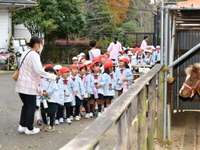 今日5日(水)年長組のあすなろの里園外学習がありました。園からは20分ほどで到着、園内めぐりをしたり、自然の中をみんなで散策した後は、アルパカに餌やり体験やポニーやうさぎ、フクロウ