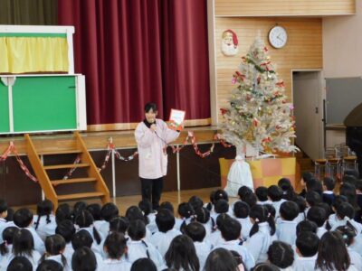 今日は子どもたちの楽しみにしていたクリスマス会でした。各学年毎のクリスマスソングの発表やオサス講師、ピア講師と一緒にクリスマスにちなんだ身体表現ダンスなどをして楽しみました。そこに