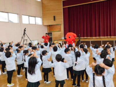 25日(火)子どもたちが楽しみにしていた「チーバくんと遊ぼう」がありました。年中、年長組の子どもたちは1年振りのチーバくんとの再会に大喜び、朝から「今日はチーバくんに会えるよ~」「