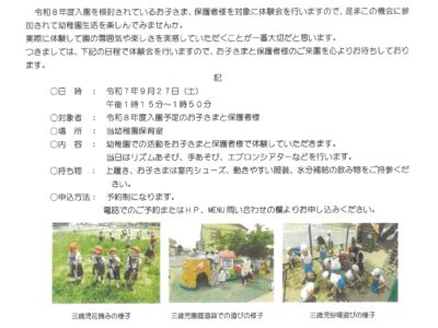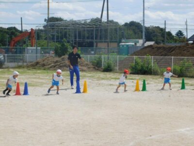 24日(水)朝晩は大ぶ秋めいてきましたが、日中は体を動かすと汗ばむ一日でした。年少、年々少組の子どもたちは体育教室がありました。スポーツフェスティバルに向けてかけっこの練習、スター