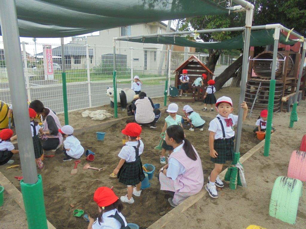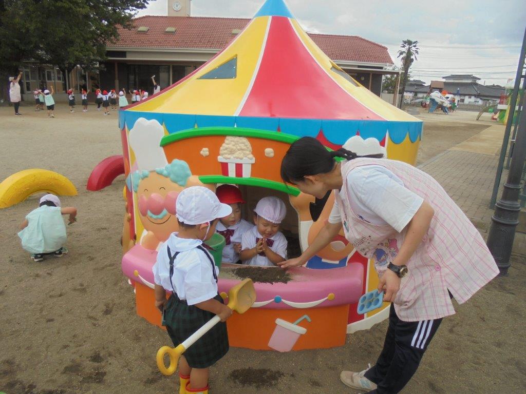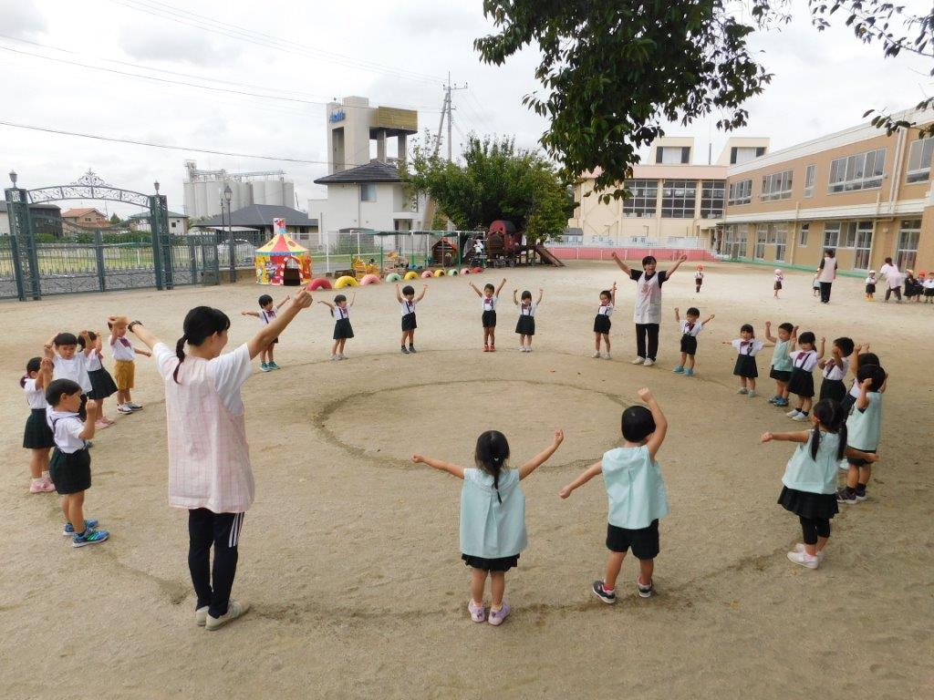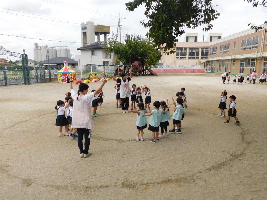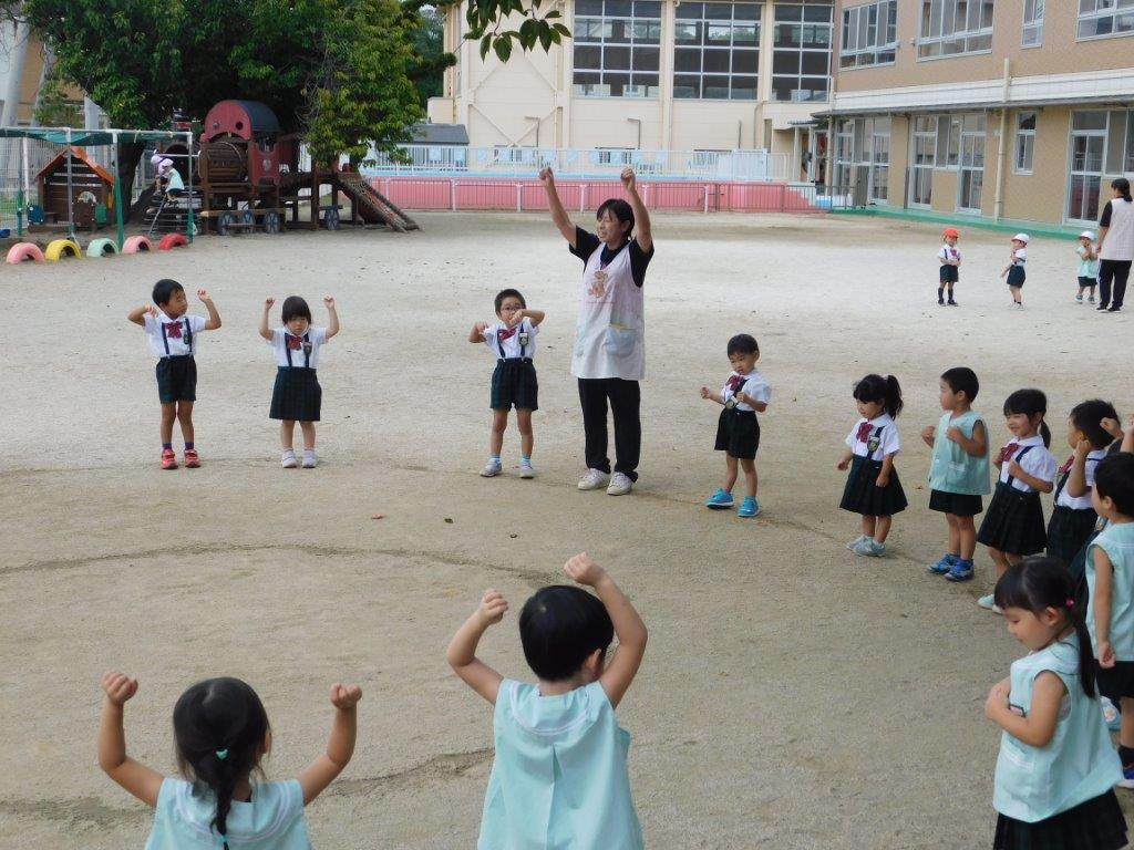 年々少、年少組では久し振りの園庭あそびやスポーツフェスティバルに向けての棒体操やおゆうぎの練習を行いました。昨日の天気とは打って変わって過ごしやすかったので、園庭などでも行い子どもたちは広々とした屋外での練習に心地よさを感じながら楽しそうでした。