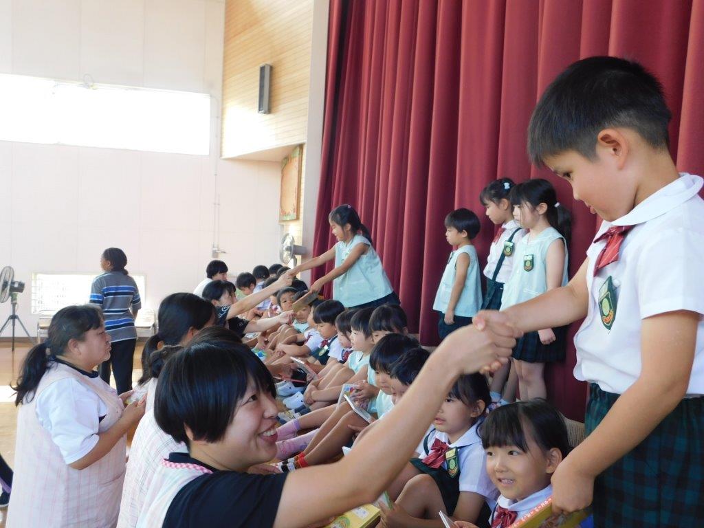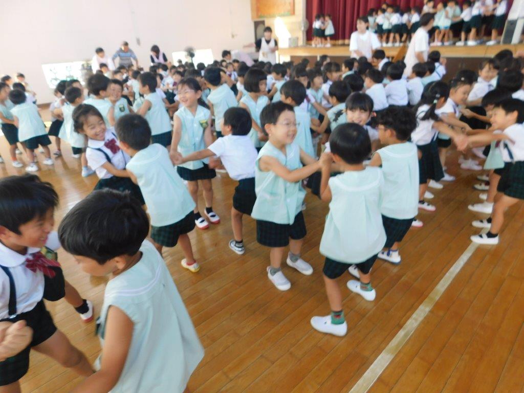 今日はお誕生日ふれあい交流会を行いました。「まちまちまった誕生日」の歌に合わせてリトミックあそびを行ったり、9月生まれのお友だちをお祝いしました。先生のインタビューにも元気に答えることができ、みんなで楽しいひとときを過ごすことができました。