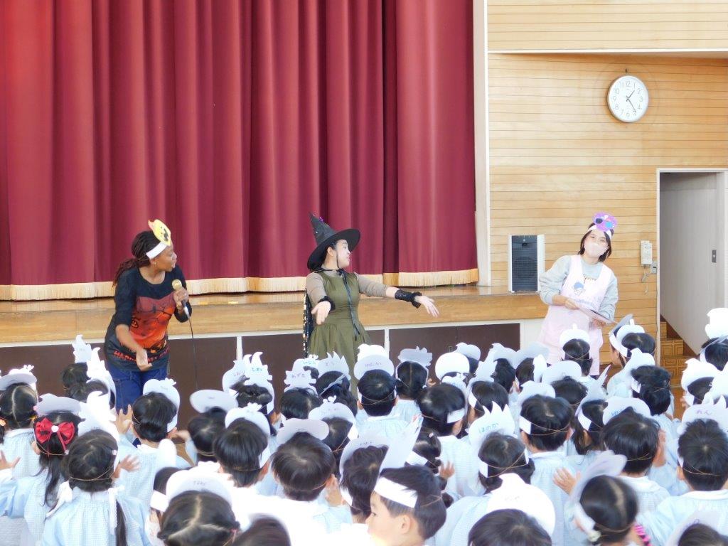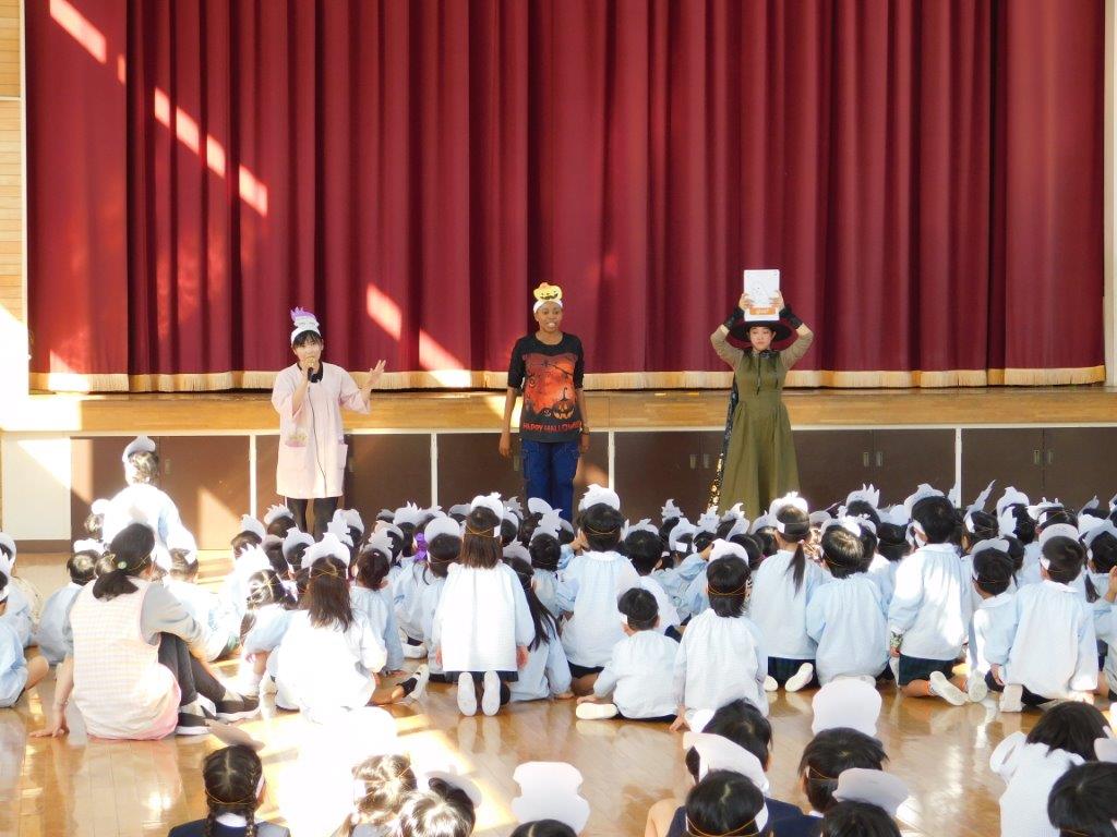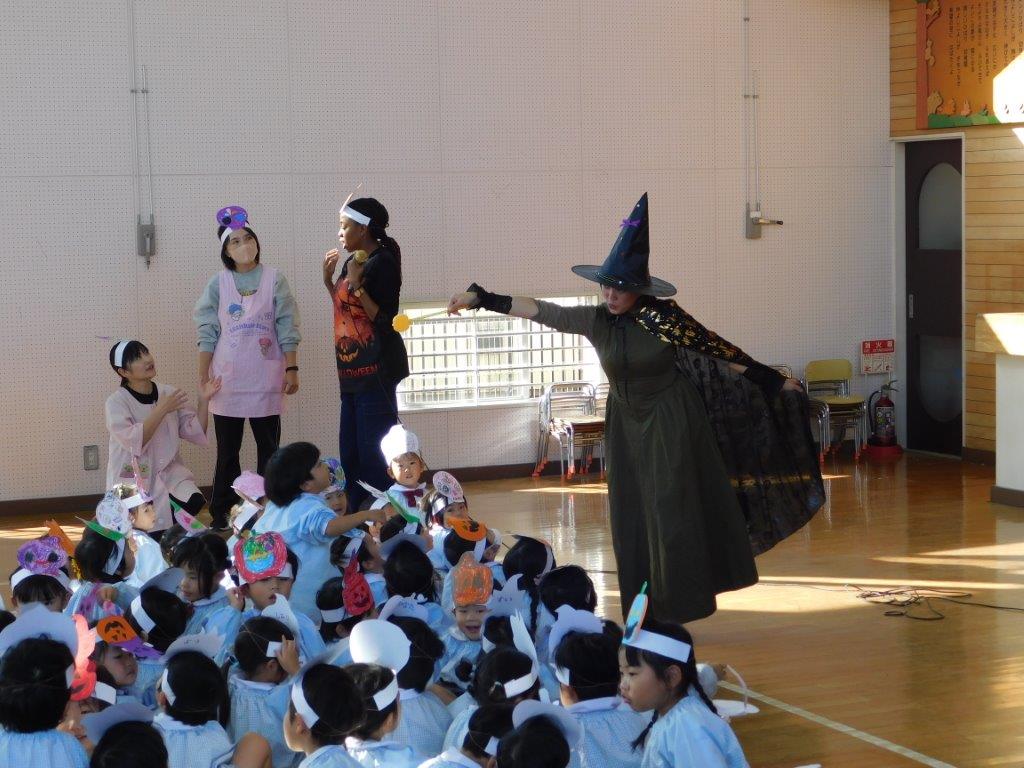 おたのしみ会終了後には、各クラスで一人ひとりの子どもたちにハロウィンドーナツ、シャボン玉のプレゼントがあり、子どもたちは大喜びでした。思い出に残るたのしいハロウィンおたのしみ会でした。