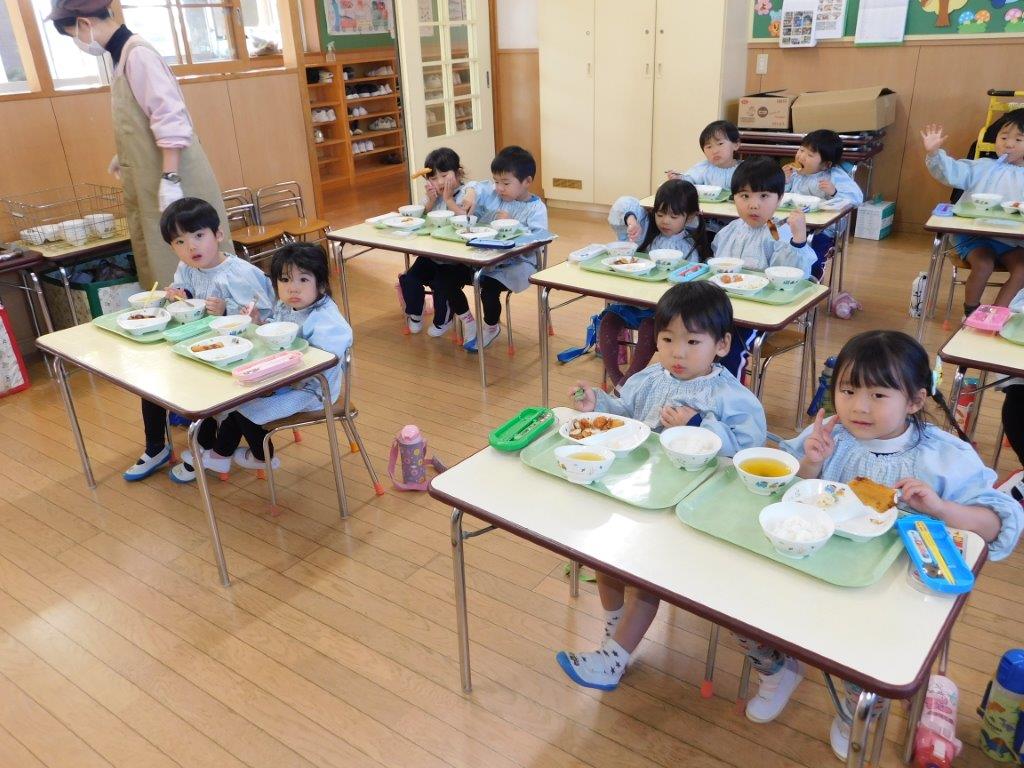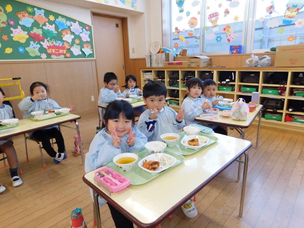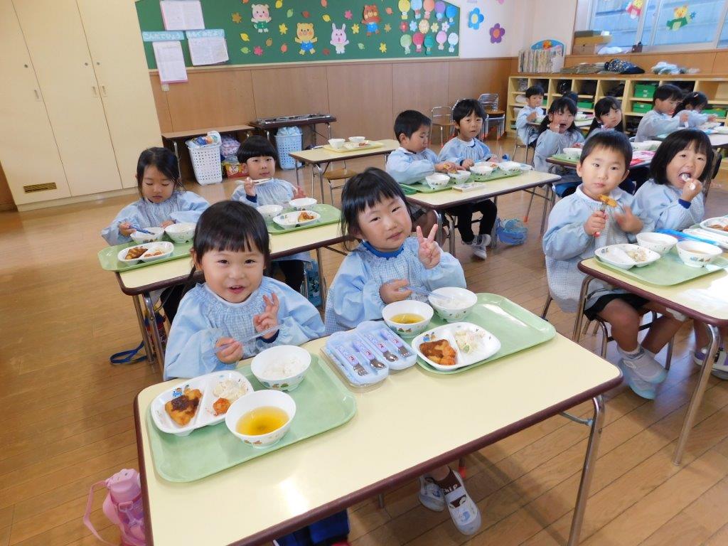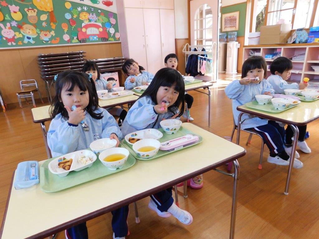 子どもたちは給食の時間がとてもたのしみです。寒くなってくるとあたたかいご飯や