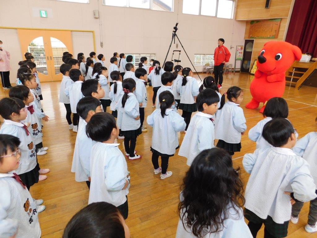 はチーバくんに会えるよ~」「何をするのかな、たのしみ~」、年々少、年少組の子