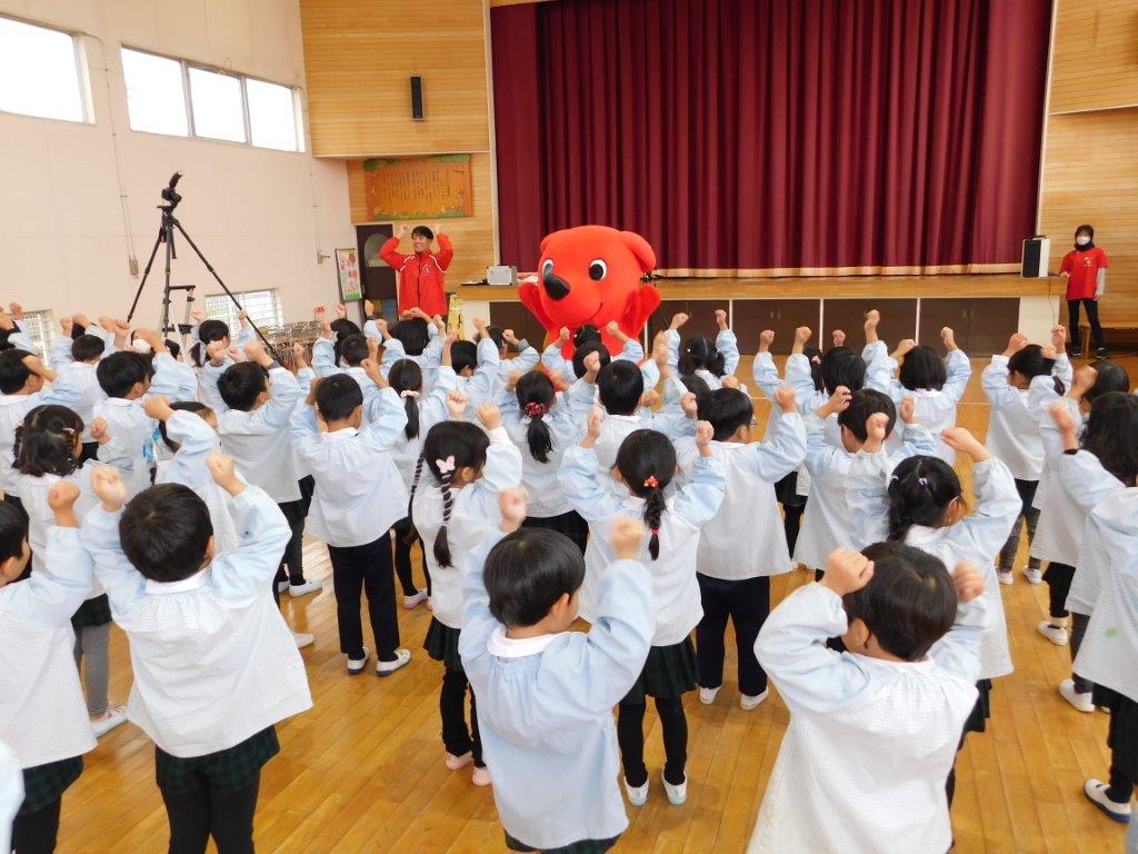 いい~」と大興奮、はじめにチーバくんとたけのこ体操を一緒に踊ったり、ダンスや