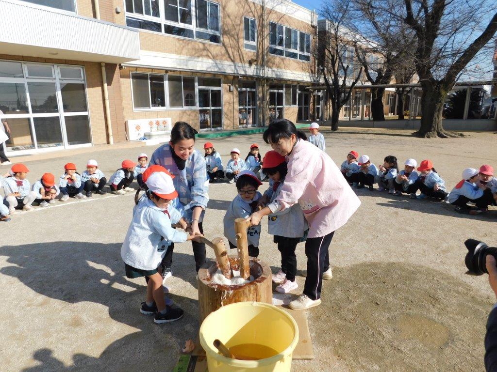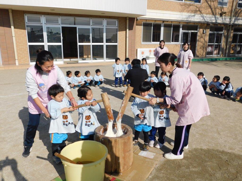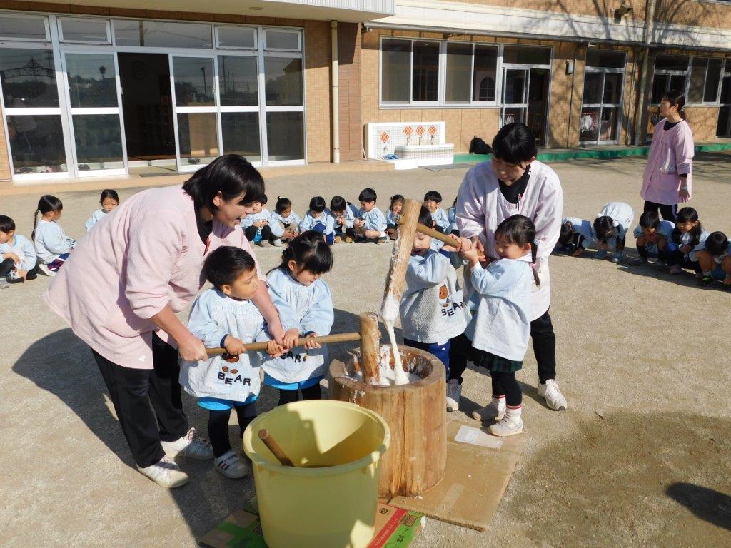 今日は穏やかな日和のなかで毎年恒例のもちつき会が行われました。年々少組から年