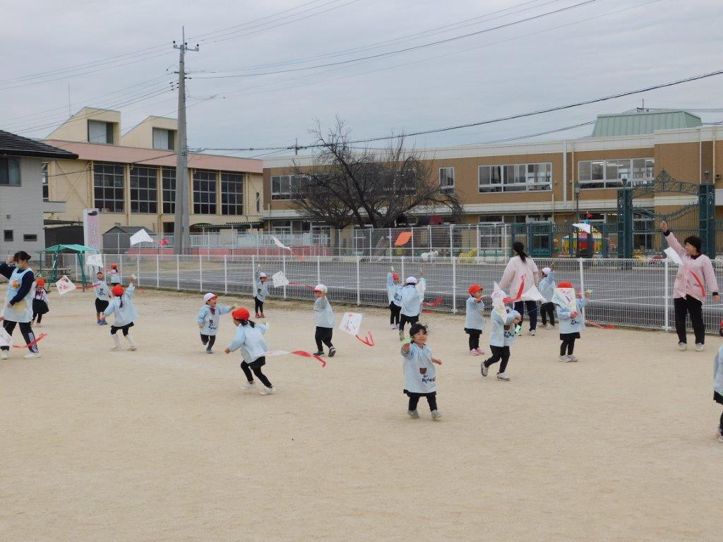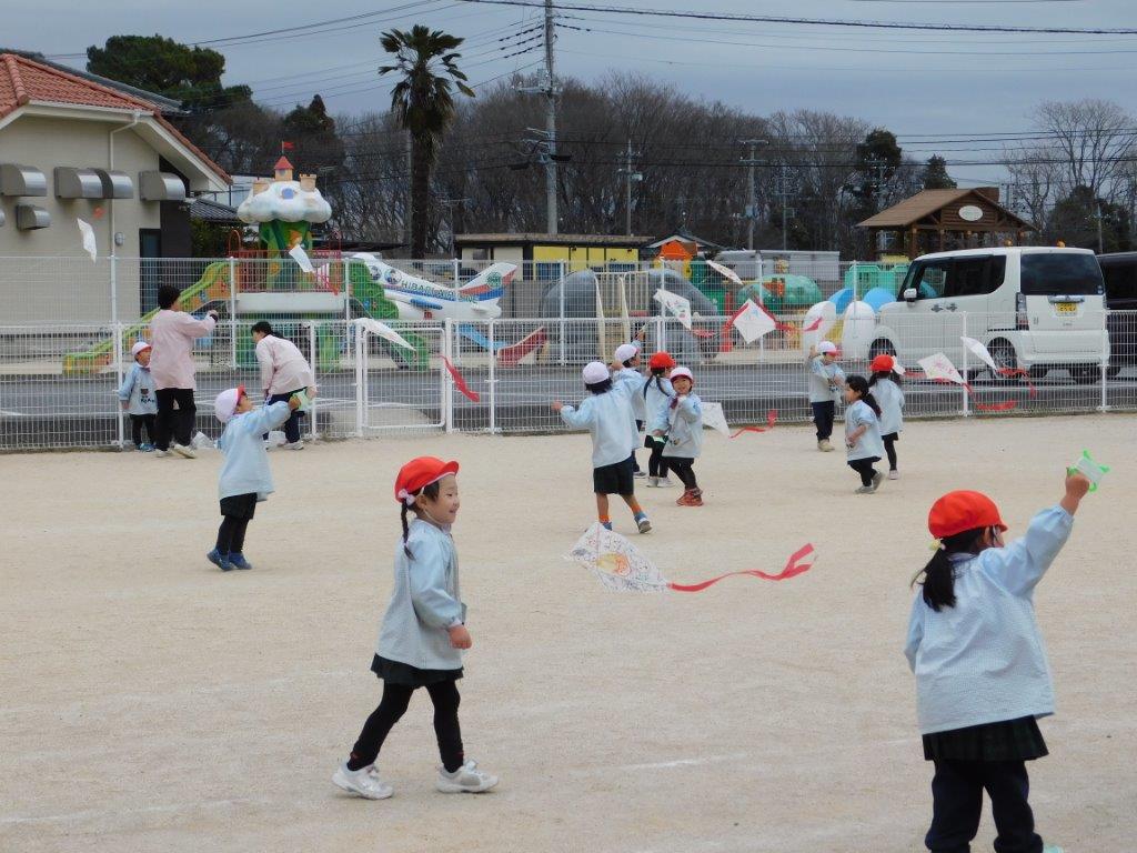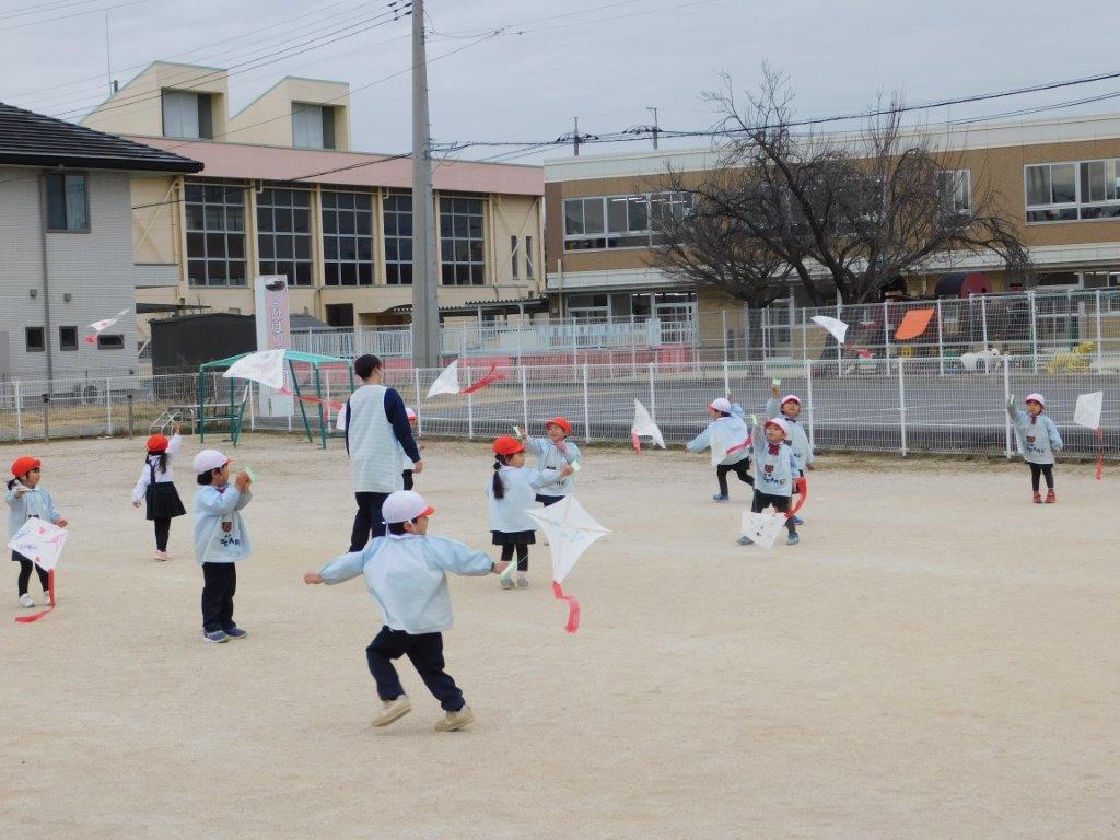 20日(火)年少クラスでは凧揚げをしてみんなで楽しみました。風が少し強かった