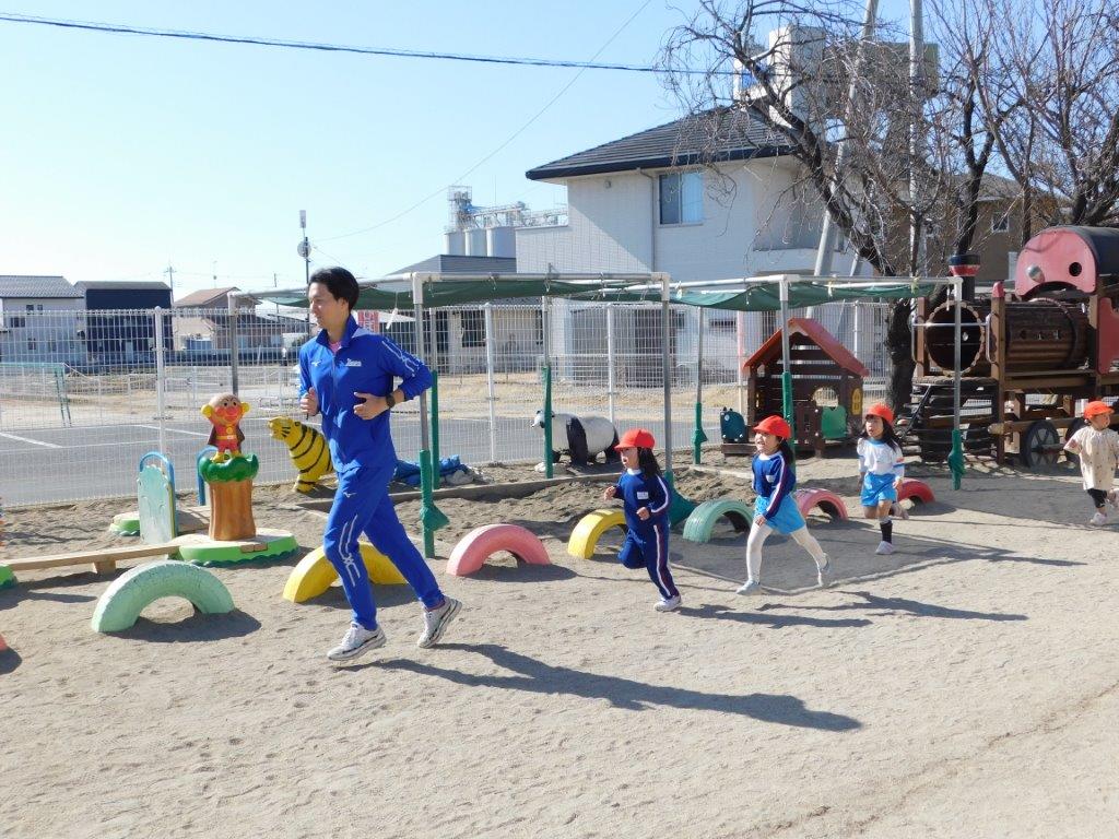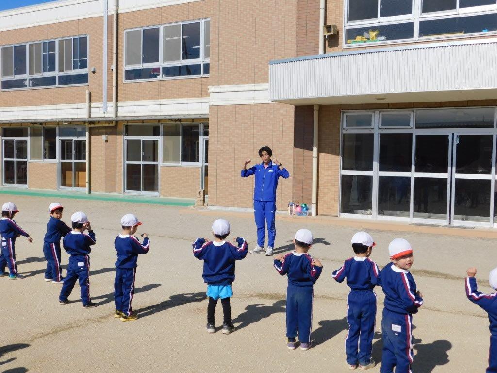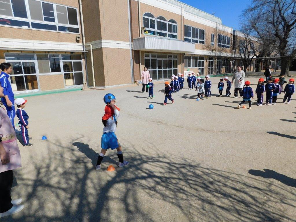 4日(水)年々少、年少組の体育教室では、園庭を走ったり、ボールを持って投げたり、転がしたり、転がってきたボールを受け取る運動あそびを行いました。「上手に転がせたよ」「次のお友だちに渡せたの~」と子どもたちはとても楽しそうでした。次週も体を思いっきり動かしながらの楽しい運動あそびを行いたいと思います。